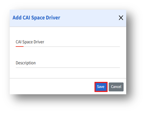 How can I add a CAI space driver? Implementing CAI Space Driver Navigate: System Settings →Space → Space → CAI Space Drivers. 1. Clicking the Add button will navigate to the “Add CAI Space Driver” page. 2. After adding the details, click the Save button to create and store the CAI Space Driver configuration.