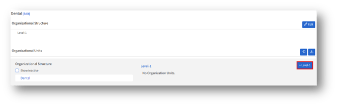 2. To add a new organizational unit, click the “+Level-1/Organizational unit” button on the right side.