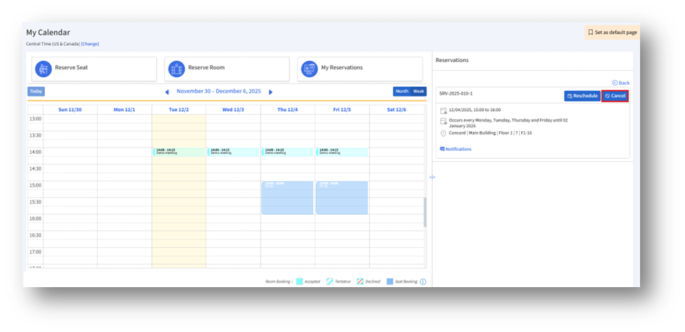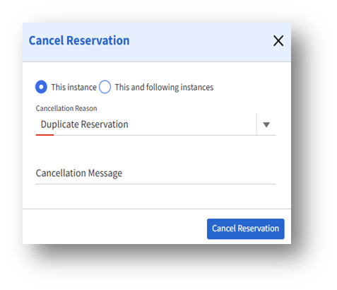 2. This and following instances – Cancel the selected reservation and all upcoming recurring ones