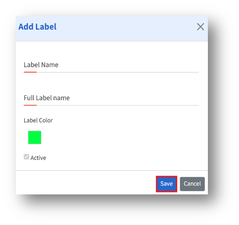 3. Enter the details, then click Save to create a new label.
