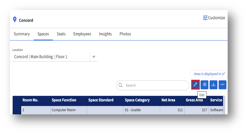 1. To edit a space detail, select a space detail and click the “Edit” button.