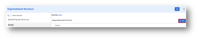 1. To edit levels under the Organizational structure, click the Edit button against Organizational structure.