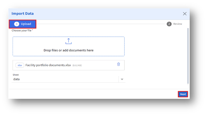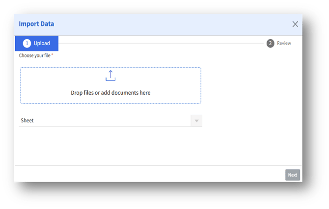 After uploading a file, click the “Next” button to move into the next step: Review.