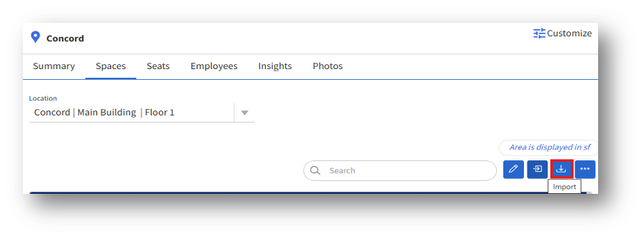 1. To import the space details into the system, click the “Import” button.