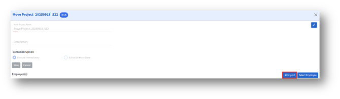a. Select the employee and click the “Select Employees” button to add them to the move project.