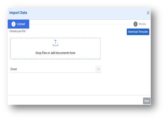 After uploading a file, click the “Next” button to move into the next step: Review.