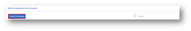On the right-hand side, there is a dedicated panel titled Selected Employees that dynamically displays the employees chosen for the move: