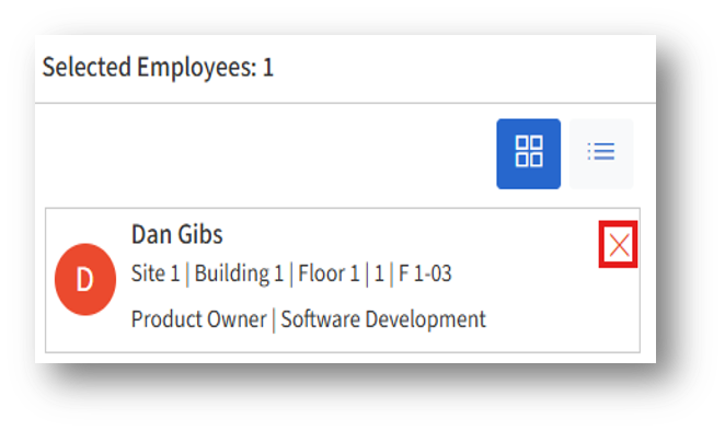 c. Click the Delete (X) option to remove an employee from the selection list.