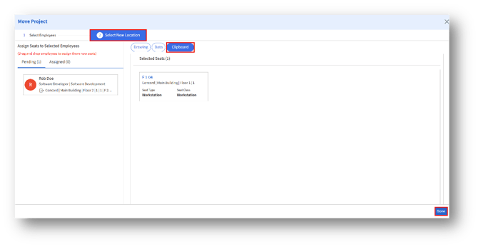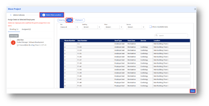 a. After all employees are assigned to new seats, click the Done button (bottom-right corner).