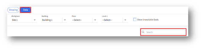 In the Data view, the employee list is displayed in a structured table format. Users can switch back to the Drawing view if they prefer a floor-plan-based visual selection.
