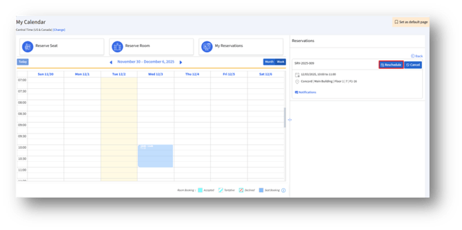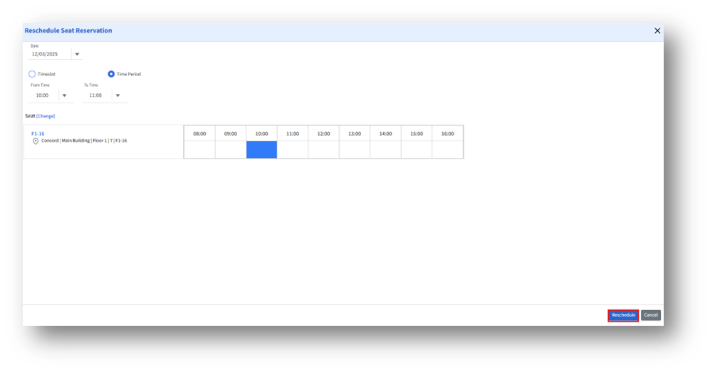 Once all changes are set, click Reschedule to save the updated reservation.