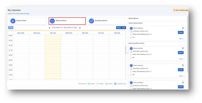 a. Click the Reserve Room button on the top menu of the My Calendar page.
