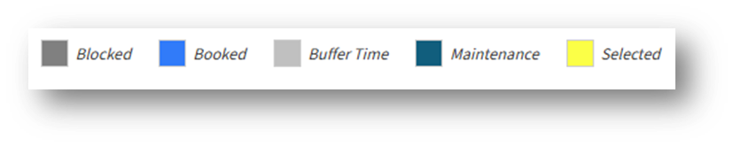 The color legends at the bottom indicate the availability and status of each room.