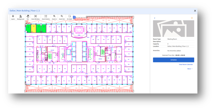 a. If you click View in Drawing, you can select the room visually on the building floor plan.