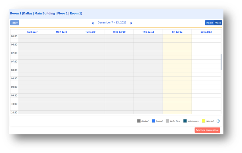 Click View Room Calendar to see the room’s daily or weekly schedule for: