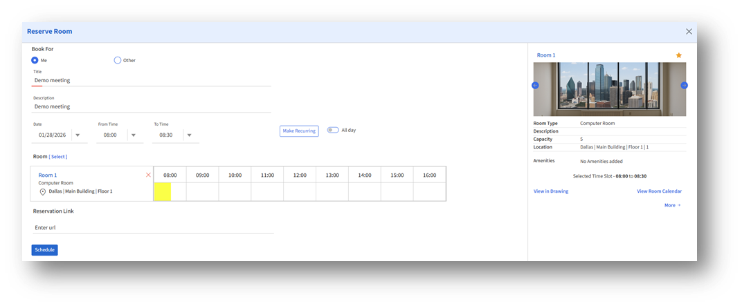 Click Schedule to confirm your room reservation.