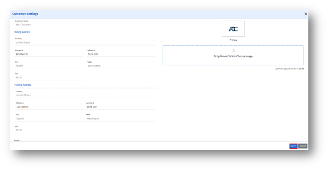 2. The admin can edit the available fields under Billing and Mailing address and click the Save button to save the changes.