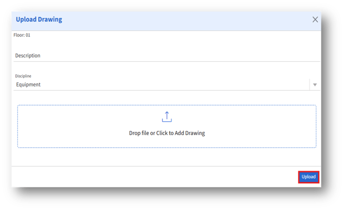 5a. Once the file is uploaded, verify the details (floor, description, and discipline).