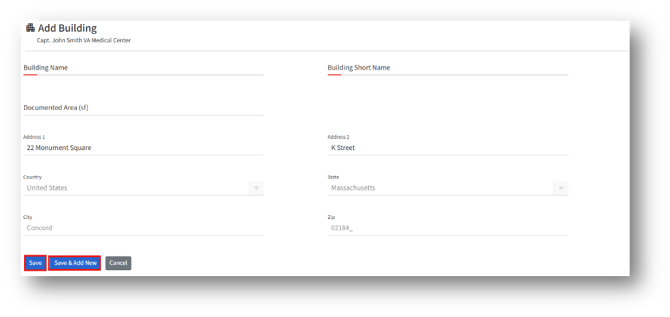 6. Click the “Save & Add New” to save the current building and clear the form to add another one.