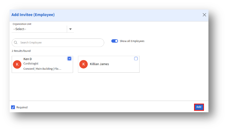 4. (Optional) Enable Required if the selected employee must attend the meeting.