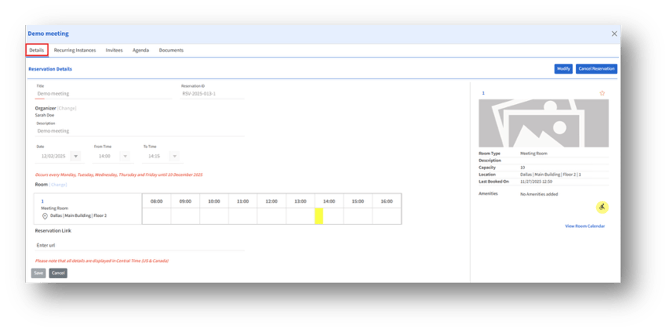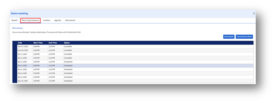- Recurring Instances Tab (For recurring reservations)