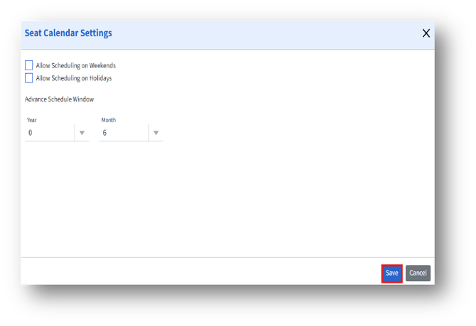 1. Allow Scheduling on Weekends – When enabled, admins can book or schedule seats on weekends (Saturday and Sunday).