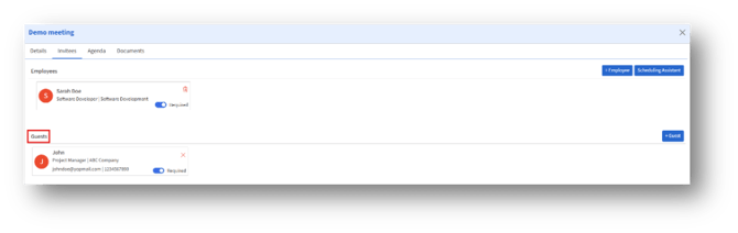 a. The guest appears under the Guests list in the Invitees tab.